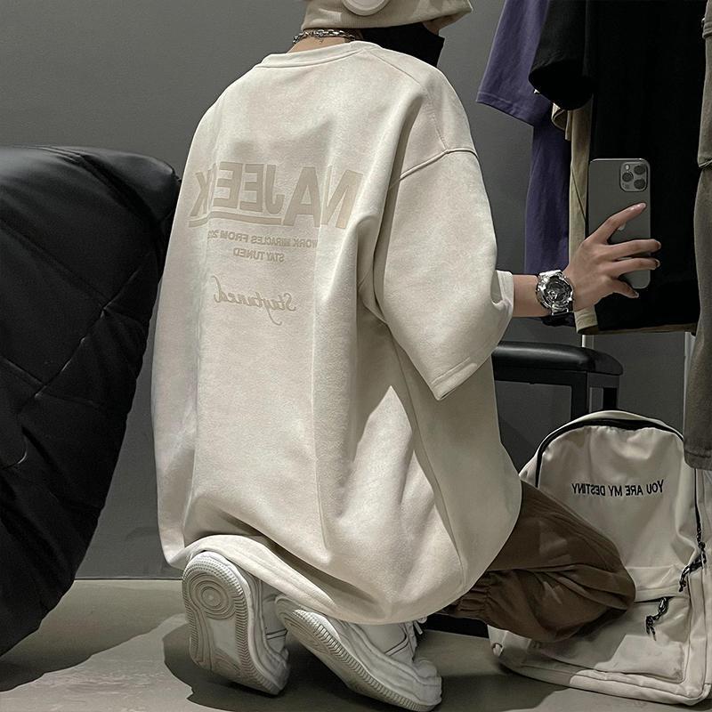 アメリカ式高街スエード夏男女カップルアルファベットプリントレトロ中性風半袖ファッションtシャツ