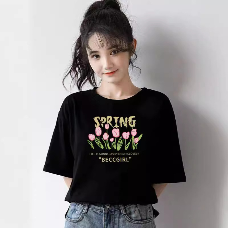 青少年男性tシャツファッション純白丸首上着プリント百合カジュアルレトロ上着カップル服同金