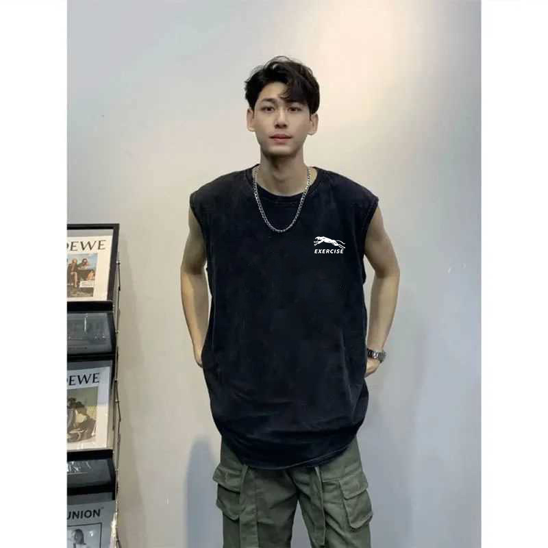2024トレンドノースリーブtシャツカン肩丸襟上着男性フィットネススポーツ大肩ベスト男性ゆるいトレーニング速乾