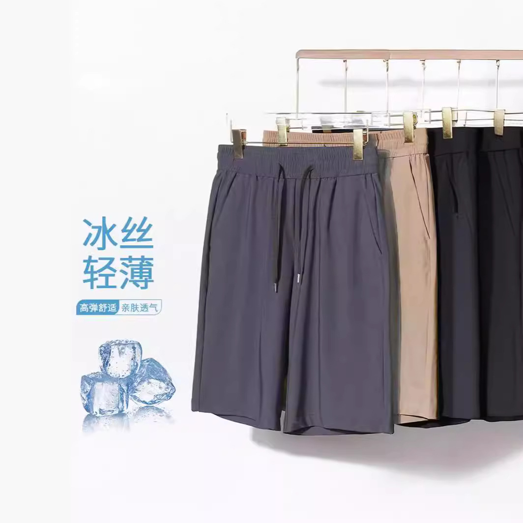 夏の男性のスポーツの中でズボンの5弾の半ズボンの薄い金のゆったりしているデブの黒色の氷の糸の5分の男性のズボンの半ズボン