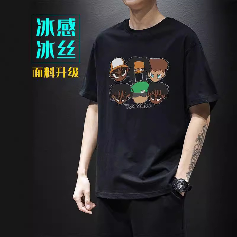 丸首半袖tシャツ男性国潮要素薄いボディシャツファッション短いファッションファッション