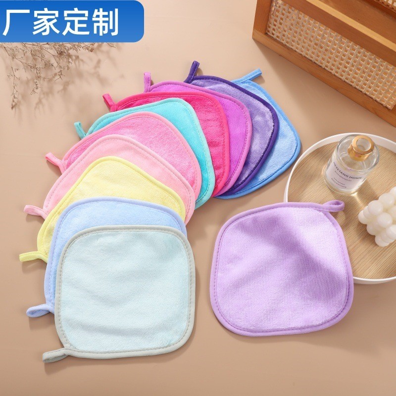 新発売のフランネル製メイク落としタオル、メーカー在庫あり、女性用洗顔タオル、厚手、フック付き正方形タオル