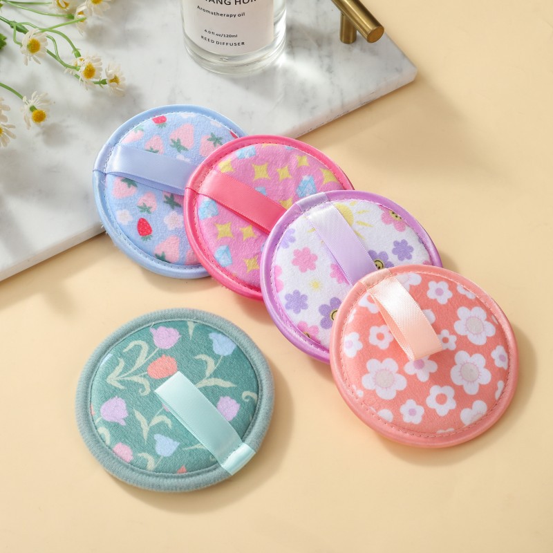工場卸売プリント洗顔スポンジ Amazon 新しいラウンドポータブルメイク落としウォーターフェイシャルクレンジング洗顔スポンジ