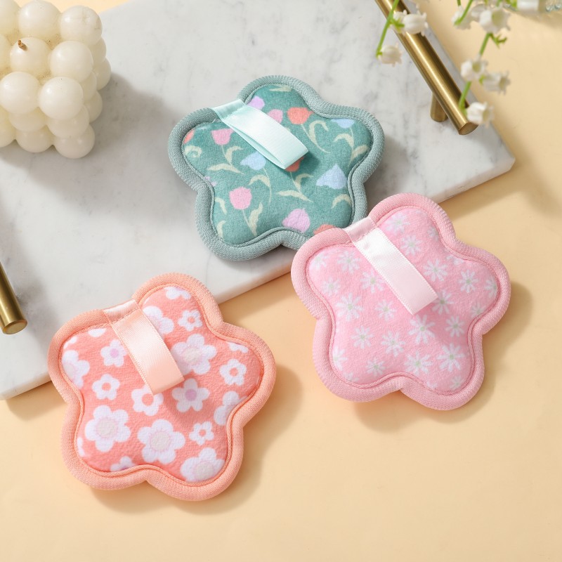 メーカー卸売梅の花の形をした洗顔スポンジ Amazon 新しいプリントポータブルクリアウォーターメイク落としフック洗顔スポンジ