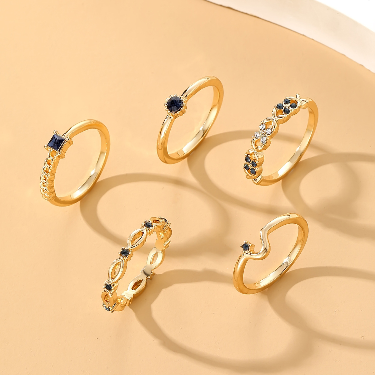 欧米のinsの小さい大衆の設計感はダイヤモンドの幾何学の5セットの指輪の女性の対外貿易の越境の創意の高級な手飾りの女性を入れます。