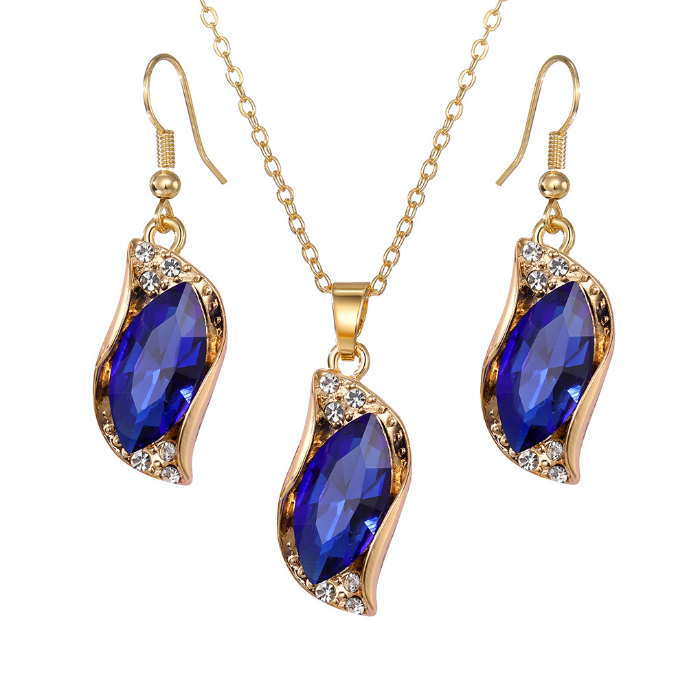 国境を越えた欧米ファッション合金水滴女性鎖骨鎖水晶ネックレスイヤリング2点セットジュエリー卸売り気質