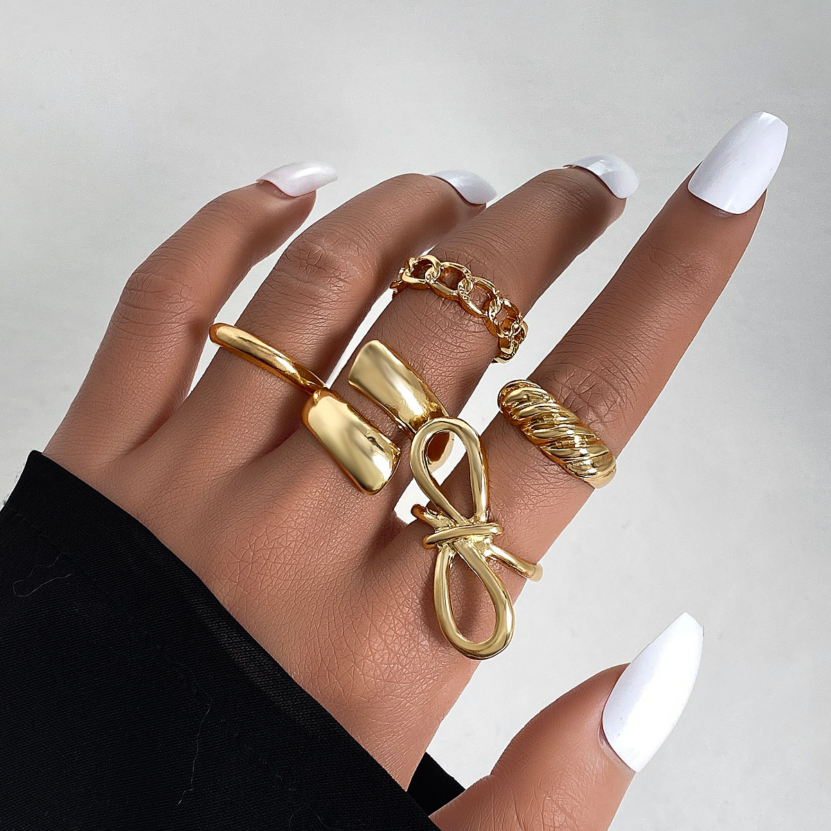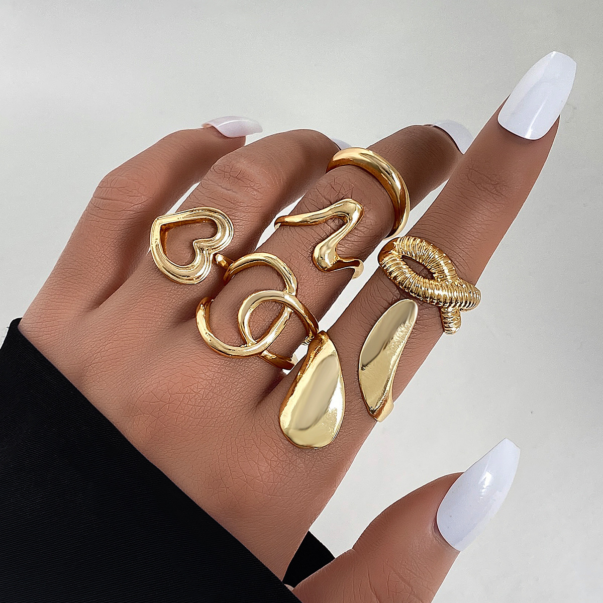 ヨーロッパとアメリカのクロスボーダーシンプルな不規則な中空カーブリング6点セットデザインオープン光沢のある誇張リングセット