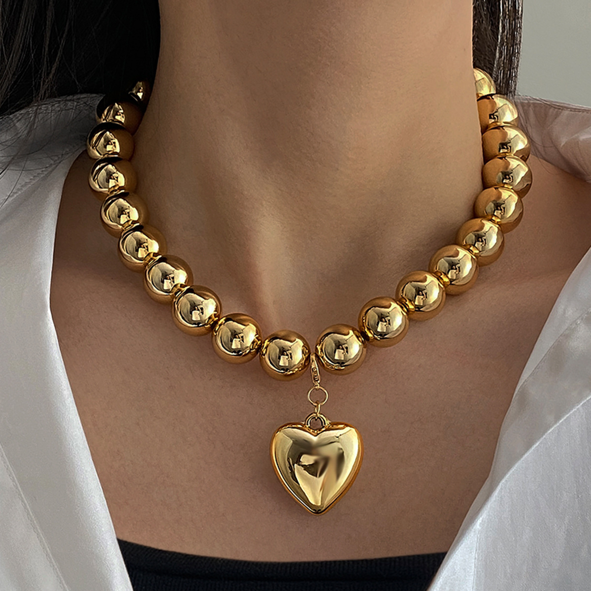 ヨーロッパとアメリカのクロスボーダージュエリー誇張された大きなラウンドビーズパンクチョーカー鎖骨チェーンホット販売幾何学的なビーズネックレス女性用ビーズ
