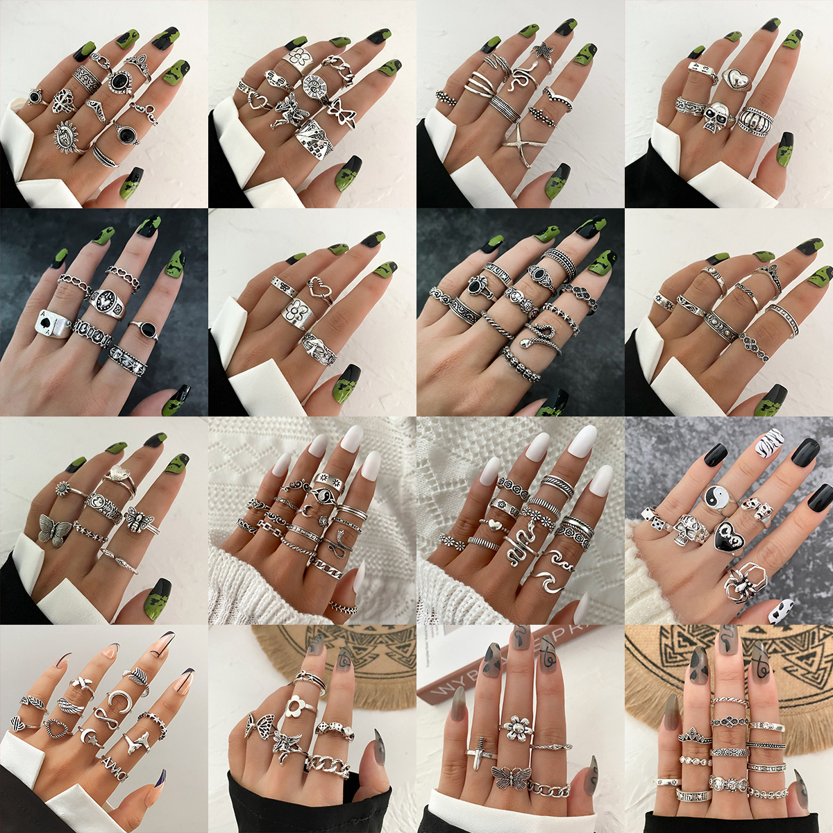 欧米の国境を越えたレトロな旧蝶蛇形指輪セットの組み合わせ開口多関節指輪セット9点セット