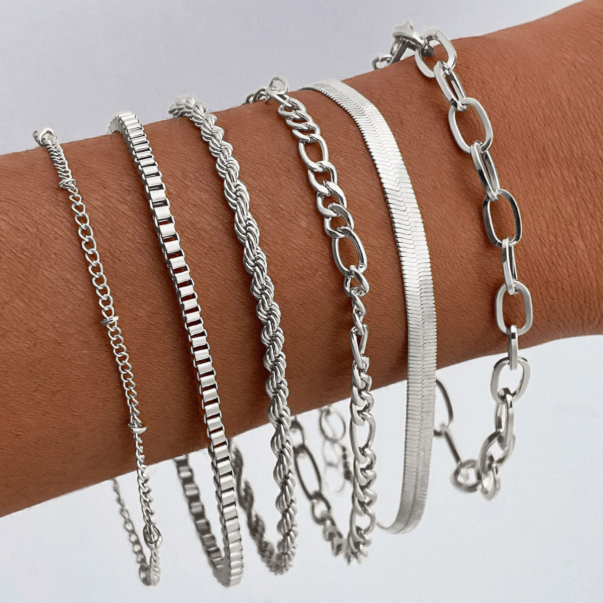 欧米の国境を越えたボヘミアンの極めて簡単な手飾り金属チェーンの女性セット6本の多層チェーンのシンプルなブレスレット
