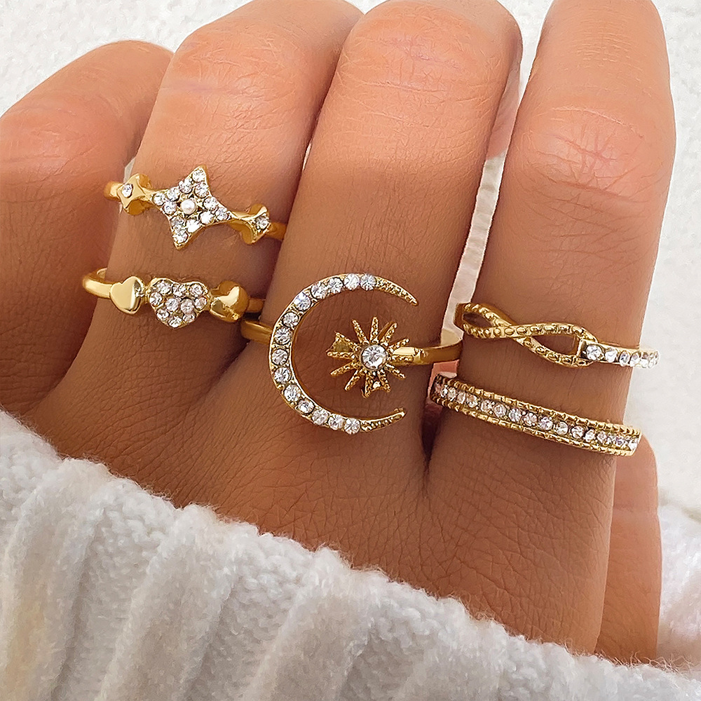 欧米のクロスボーダーの新型のセットの指輪の個性の9件の愛の8字の星の月はダイヤモンドの組み合わせの指輪の女性を入れます。