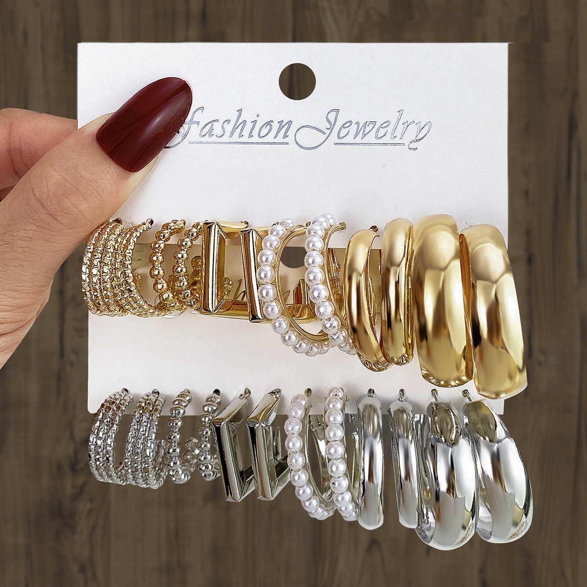 欧米の国境を越えて真珠の幾何学的な女性のイヤリングをはめ込んだレトロなフランスの金色の耳輪ピアスセット6点セットの女性