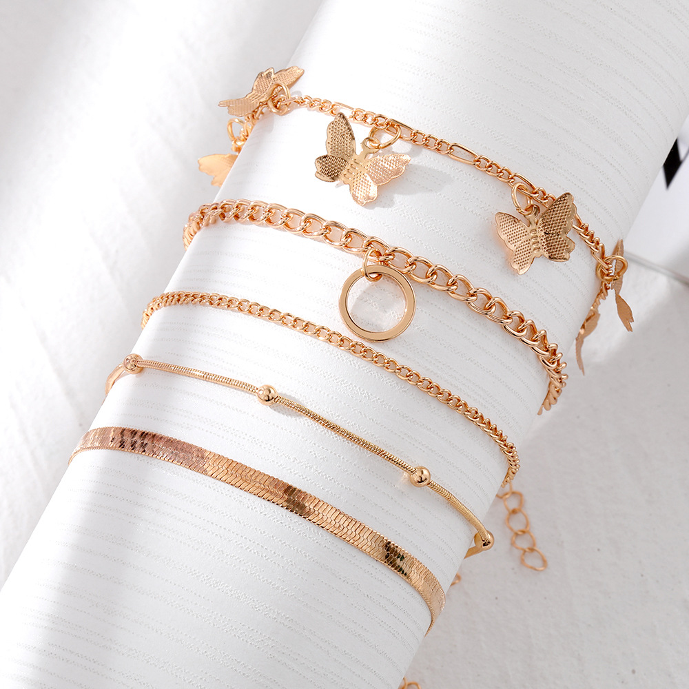 国境を越えた欧米のファッション多層合金の新しいアクセサリー蝶金属ビーズチェーンの手のひら5点セットのブレスレットの女性