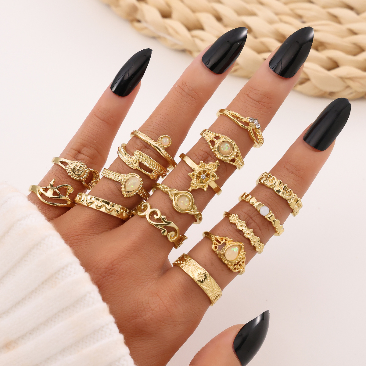 韓飾界速売は欧米のレトロな愛の蝶の花の蛇の形の指輪の大きいセットの24セットの指輪を売ります。