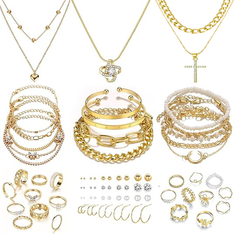 欧米のクロスボーダーアマゾン58点セットジュエリーリング創意愛ネックレスパンク風ブレスレットジュエリー女性