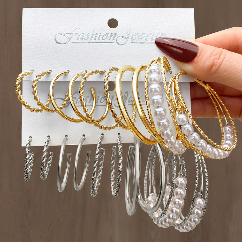 欧米風の金属の耳輪の四角形の幾何学の形のイヤリングの復古の真珠の耳飾りのヘボン風のイヤリングのセットの5セット