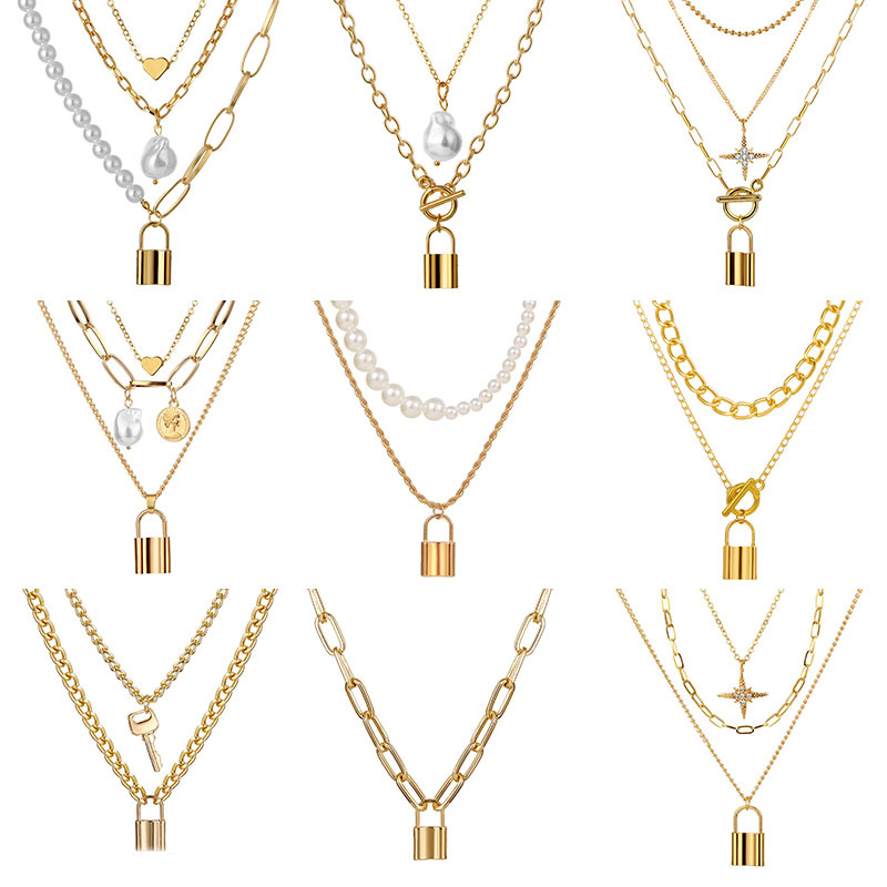 欧米の新型の人気商品はシンプルで多層のクロスネックレスです。