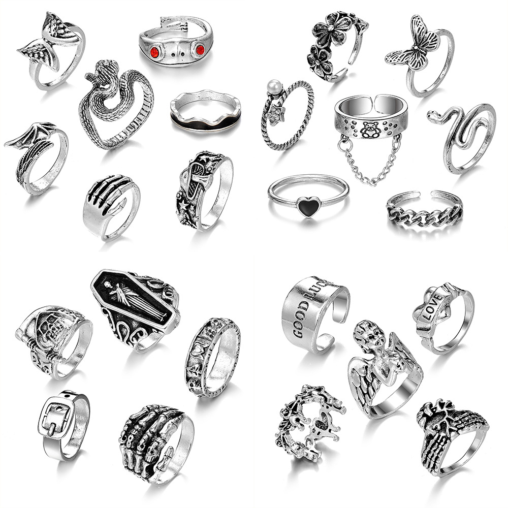 アマゾン热い贩売レトロ蛇动物开きリング泣きカエル大げさレトロ24ピースリングセット手饰り