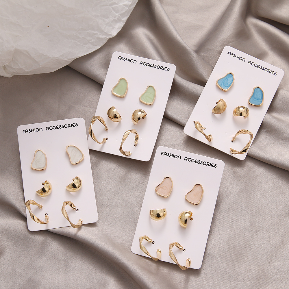 ヨーロッパとアメリカの新しい三角形リングイヤリングセットの組み合わせクリエイティブレトロファッション合金イヤリングの国境を越えた供給