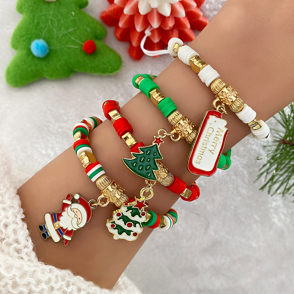 クリスマスの個性のかわいい漫画のクリスマスのブレスレットのサンタクロースのヘラジカの雪だるまの木のクリスマスの雰囲気感は女性を飾ります。