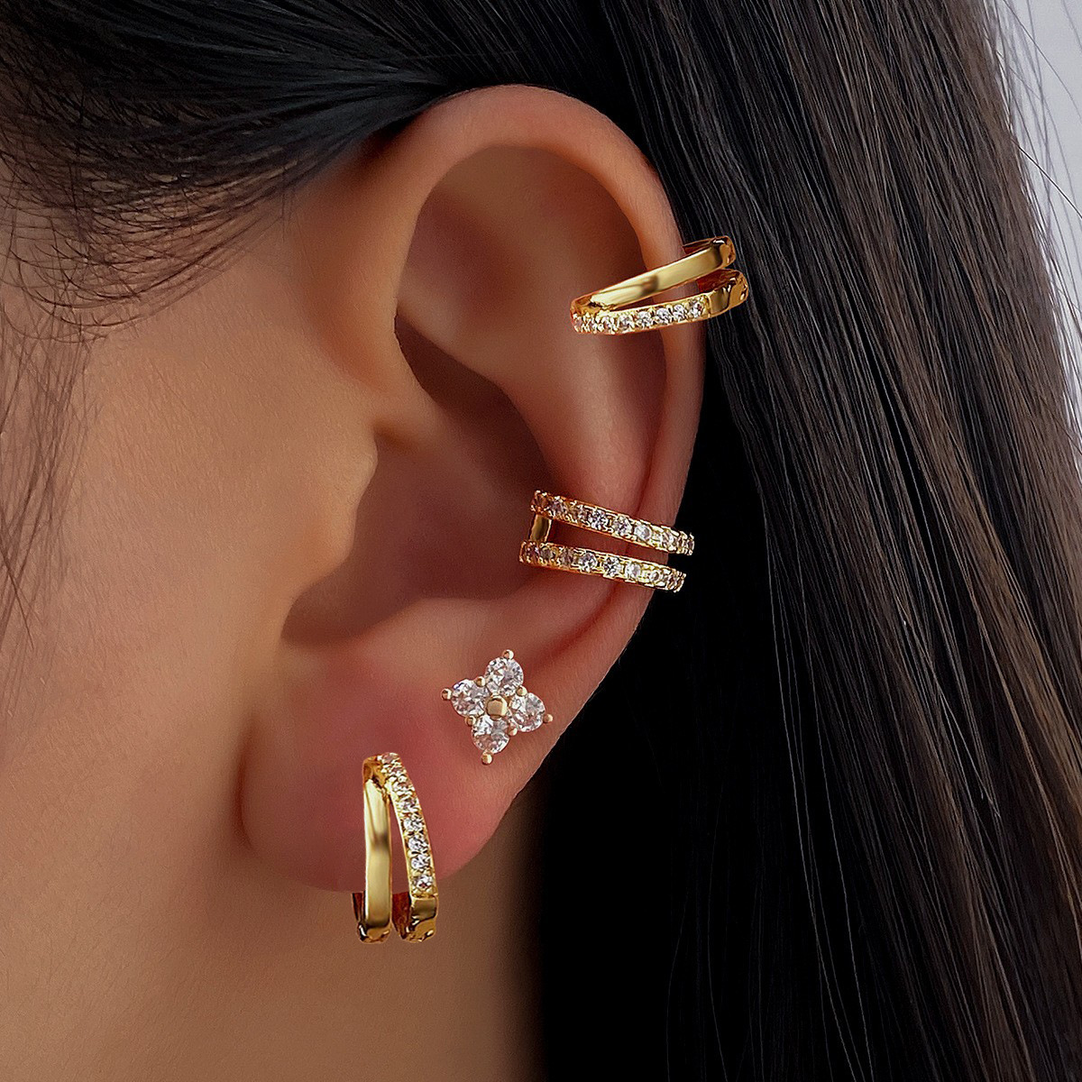 ヨーロッパとアメリカのファッショナブルな幾何学的なスタイルのジルコンイヤリングニッチイヤーカフセット複数のペアのパーソナライズされたトレンディな甘くてクールなイヤリング女性用