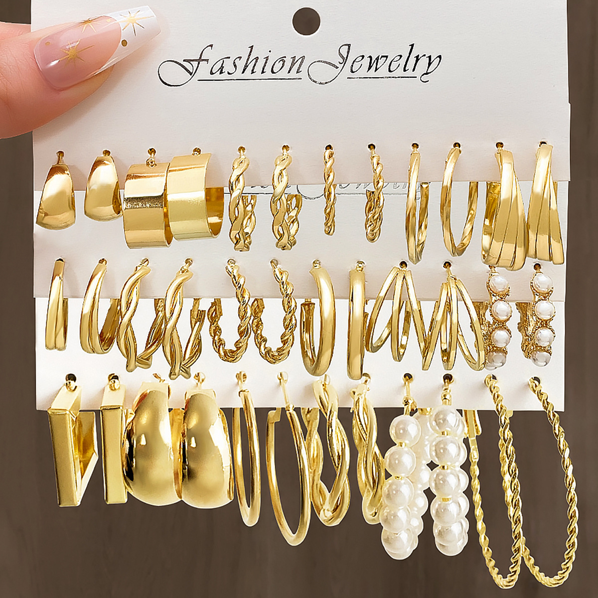 欧米の越境した新型の真珠のジルコンのピアスのセットの20対のデザインのアイデアの復古のシンプルな気質の耳輪の卸売り