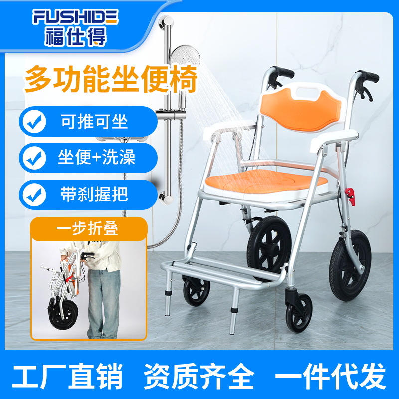 高齢者用トイレ椅子、車輪付き軽量車椅子、洗髪・入浴可能、アルミ合金製多機能、トイレ付き、肘掛け付き、健康管理