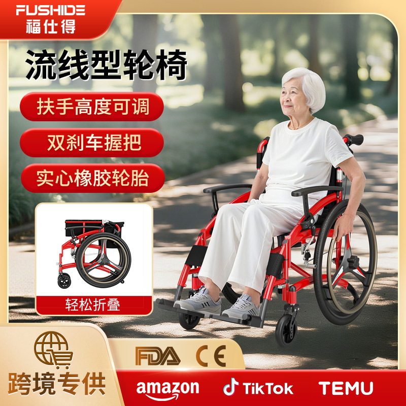 アルミ合金車椅子老人折り畳み歩行車軽便型旅行手押し車屋外家庭用ブレーキ付きエアレス