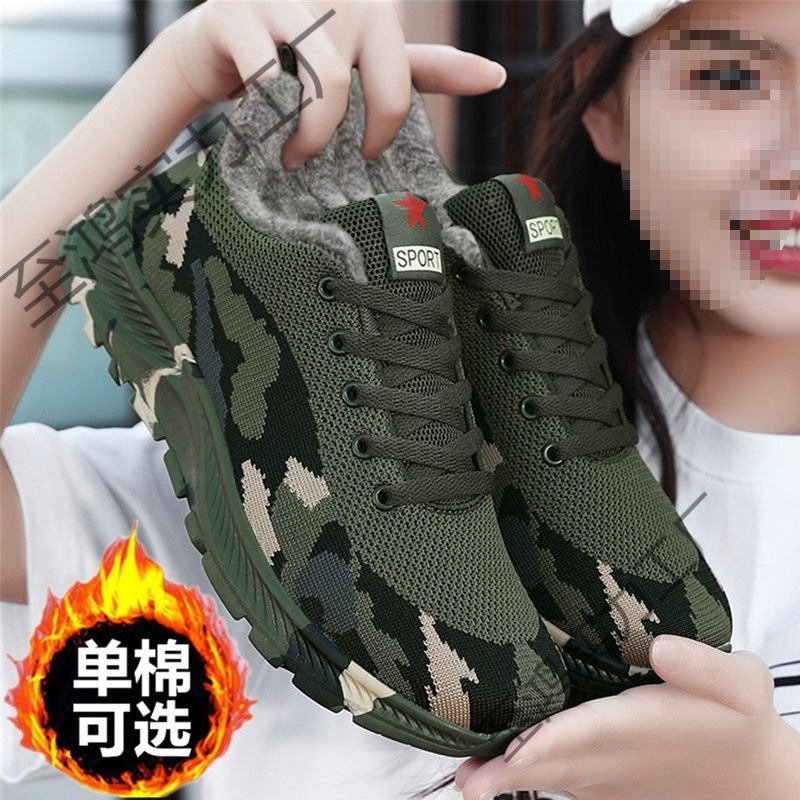 迷彩靴男秋冬加毛綿靴アウトドア登山訓練靴学生軍事訓練現場労働保護男靴綿ゴム靴