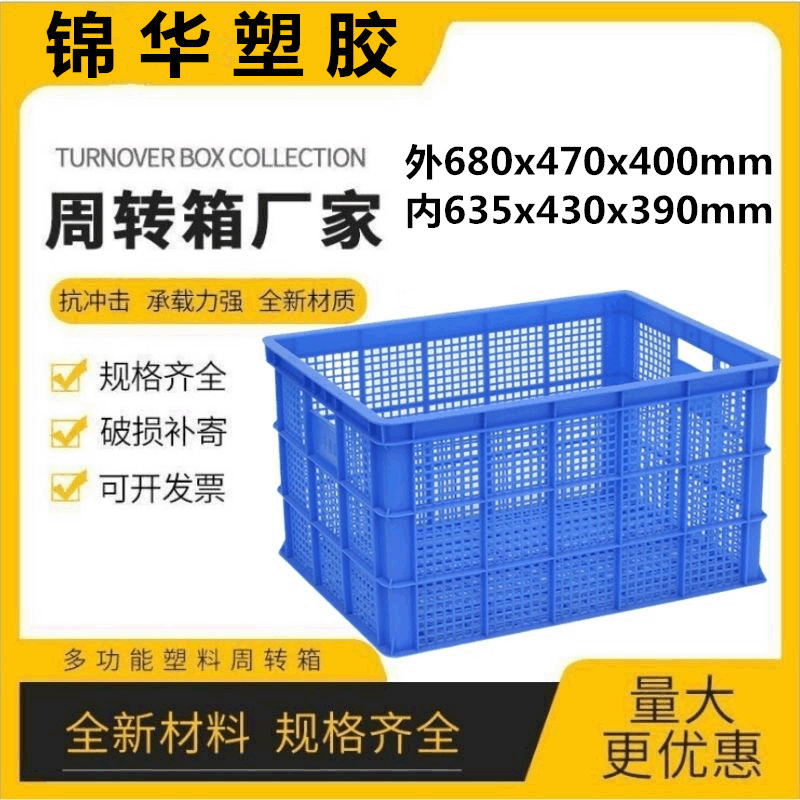 厚いメッシュグリーンプラスチック回転かご物流長方形大680回転箱果物野菜かご卸売り