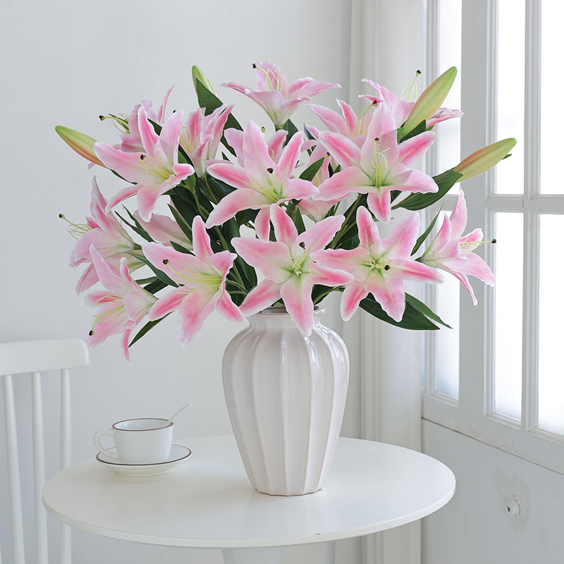 高級百合シミュレーション花ネット赤長枝5頭香水百合花結婚式装飾花写真撮影道具置物