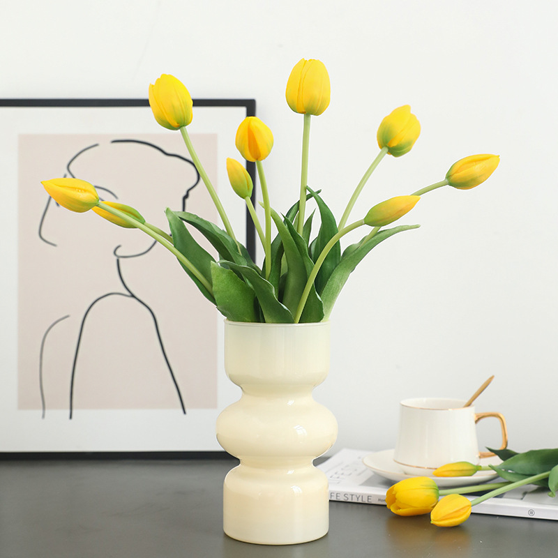 3本のラテックスの手触りのチューリップは花の家の客間の置物の影楼の装飾の花の道具をシミュレーションして花束をシミュレーションします。