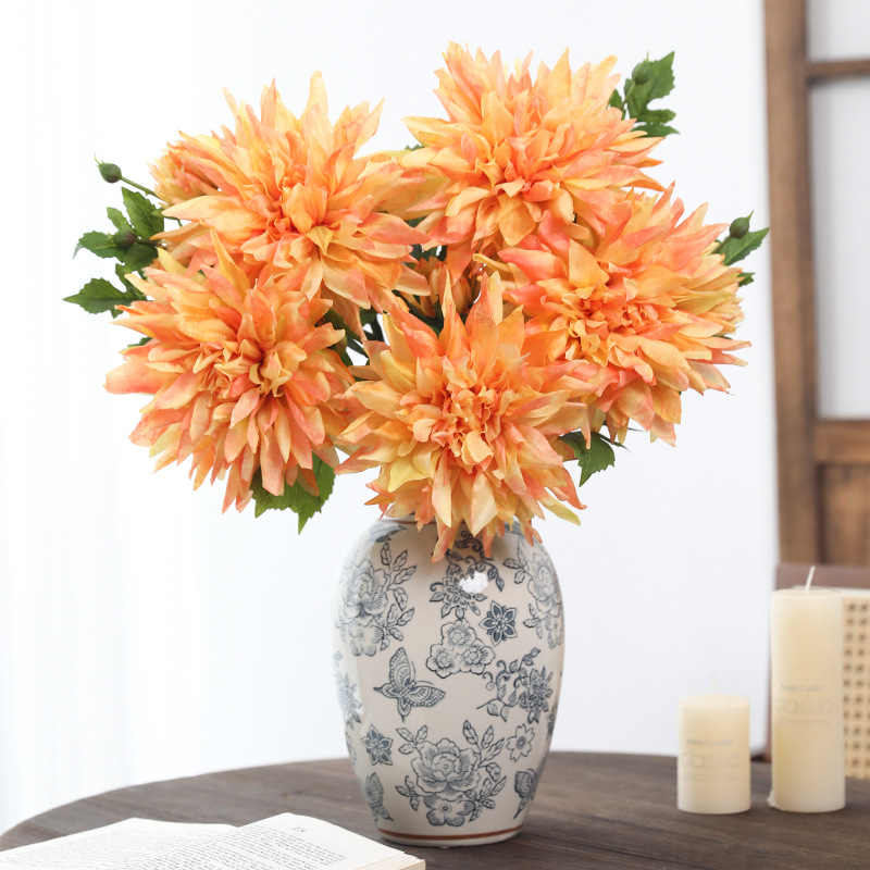 新しいスタイルの一輪一蕾咲くダリア造花ハイエンドホームレストラン装飾花装飾品クロスボーダー造花
