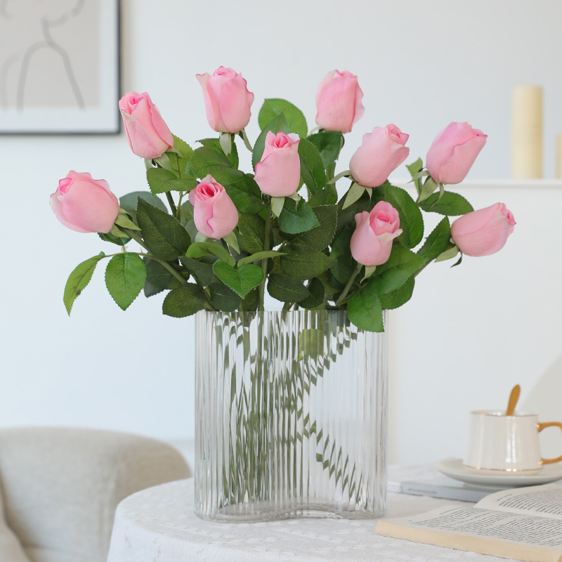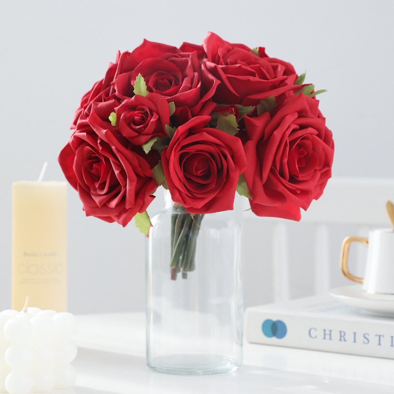 高級保湿の手触りのバレンタインデーのバラのシミュレーション花の高級感の客間の偽の花は食卓の花束を並べて卸売りします。
