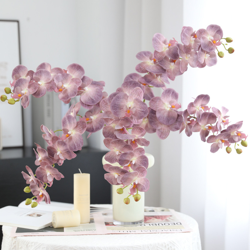 9頭の胡蝶蘭のシミュレーションの花のフィルムの高級感の客間の食卓の家庭の花の芸の置物の人工花のメーカーの卸売り