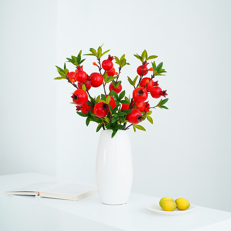 ザクロの果実の単枝3頭のザクロの枝の客間の食卓の装飾の花の芸の道具をシミュレーションしてザクロの卸売りをシミュレーションします。