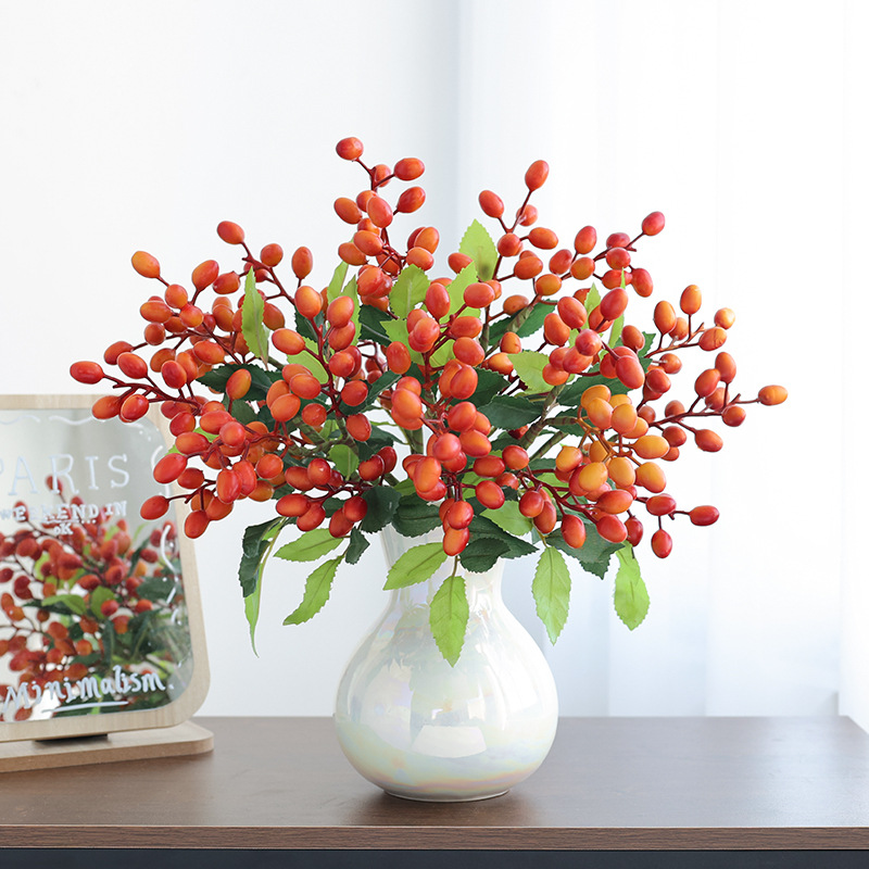 シミュレーション3フォーククリスマスベリーオリーブ果アカシア豆家庭結婚祝い新年装飾紅果植物偽花撮影