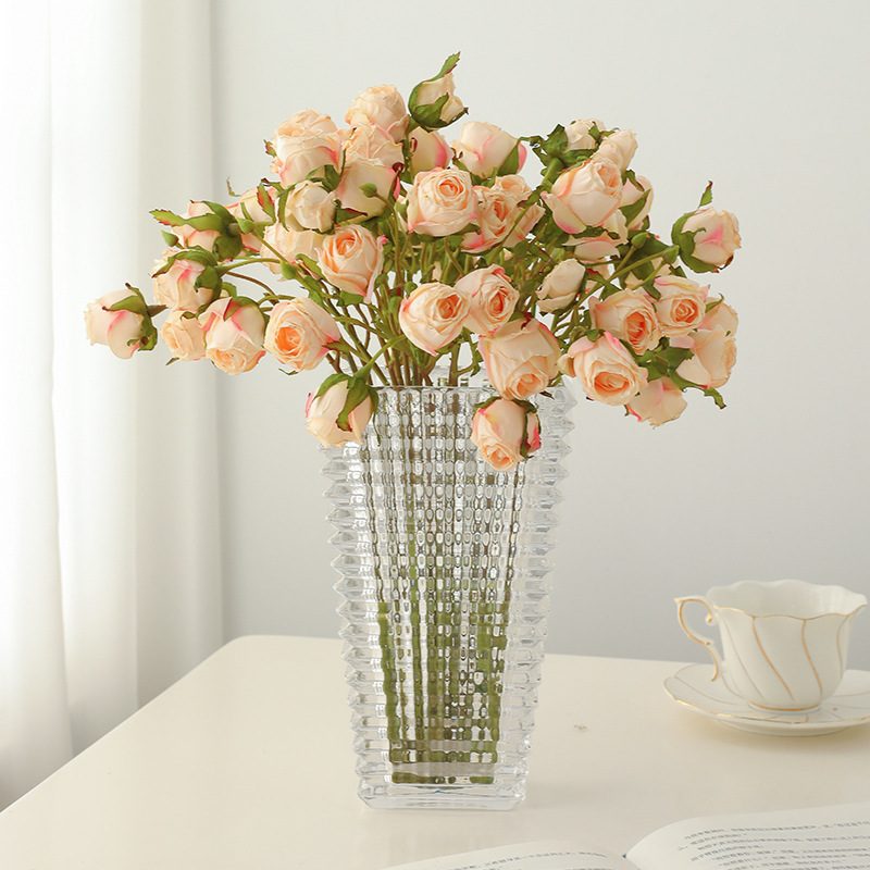ヨーロッパのレトロな9頭の束の蕾は花のホテルの家の装飾の置物の人工花のバラの卸売りをシミュレーションします。