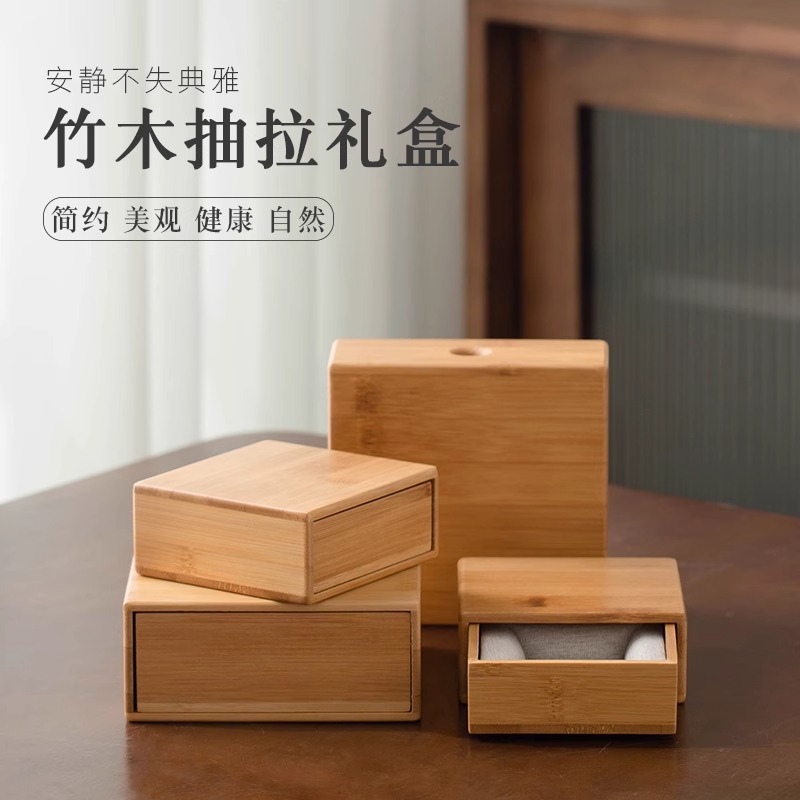竹の木のアクセサリーの箱の空の箱のレトロな四角形のシンプルな小さいサイズの引き出しの収納箱のギフトボックスの家庭用デスクトップ