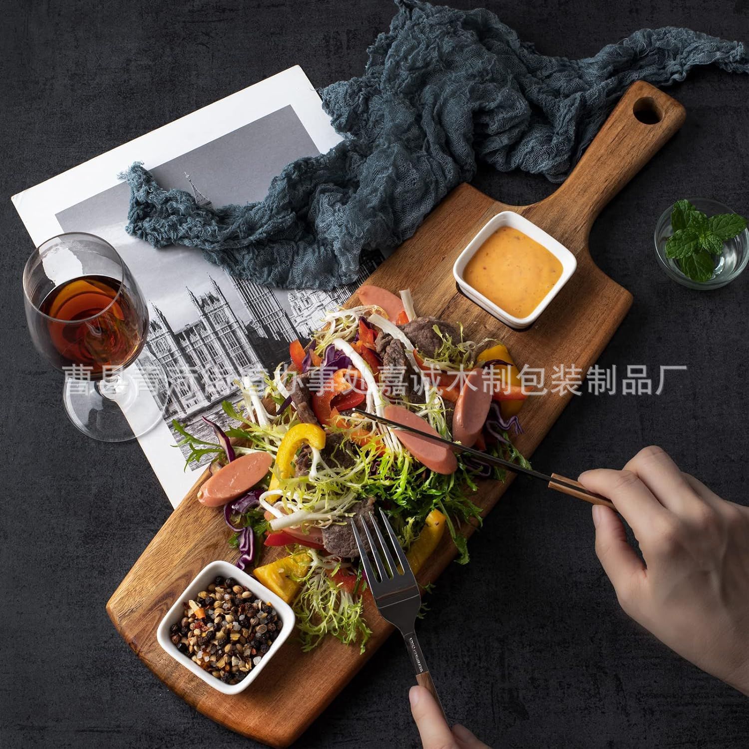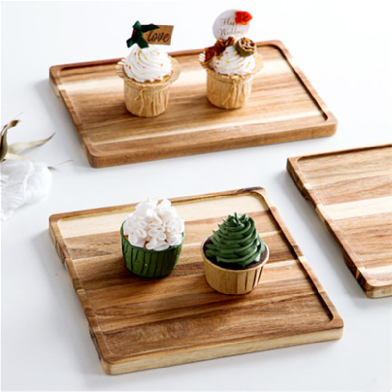 木トレーアカシア木茶トレー家庭用実木ステーキパン果物木製食事皿ピクニックキャンプハンドル付き