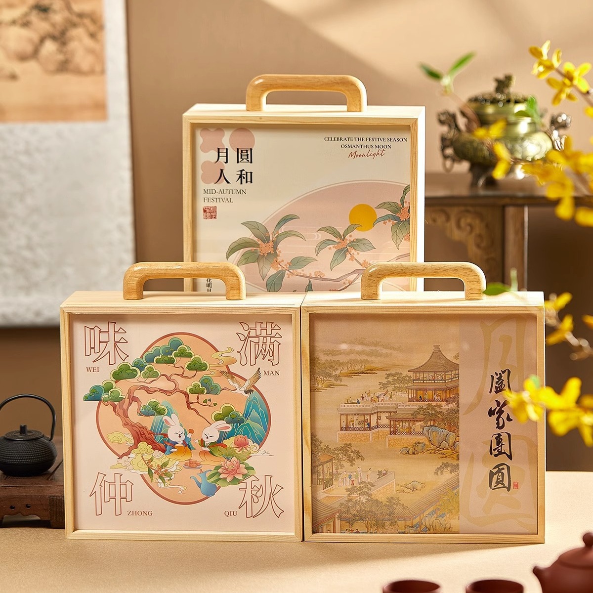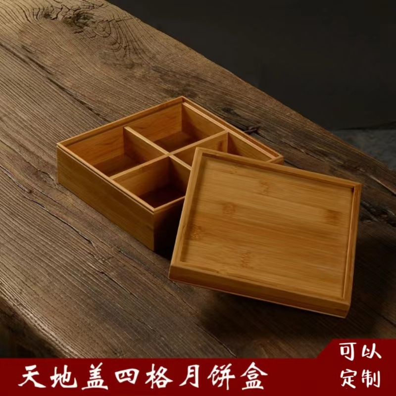 天地蓋四格月餅箱木製実木シンプル収納単位福祉包装箱茶包箱中秋礼箱