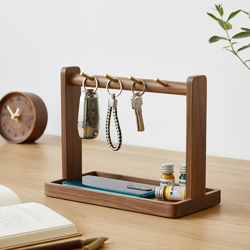 黒胡桃木鍵棚実木掛け鍵棚入戸収納置物棚トレーデスクトップ収納