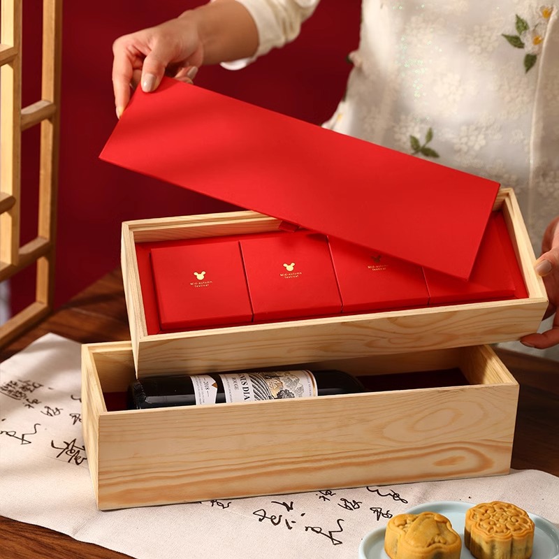 中秋の月餅のワインのギフトボックスは二重包装箱を持ってワインの空の木の箱をプレゼントします。