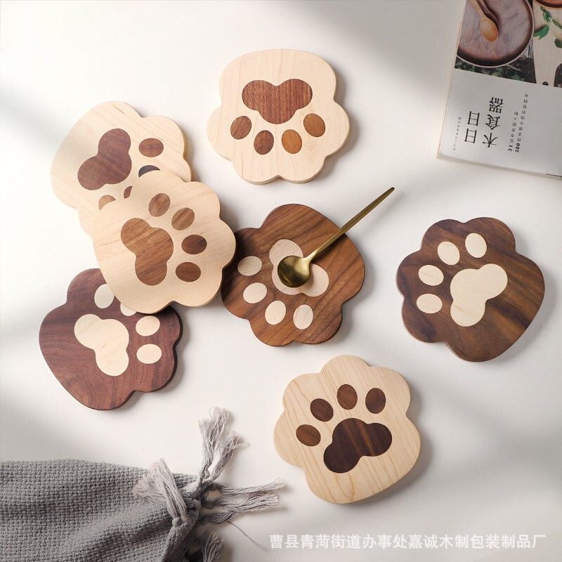 クリエイティブ木製断熱ボウルマット木製ティーポットティーカップマグカップ昼寝マット黒胡桃木猫爪コースター