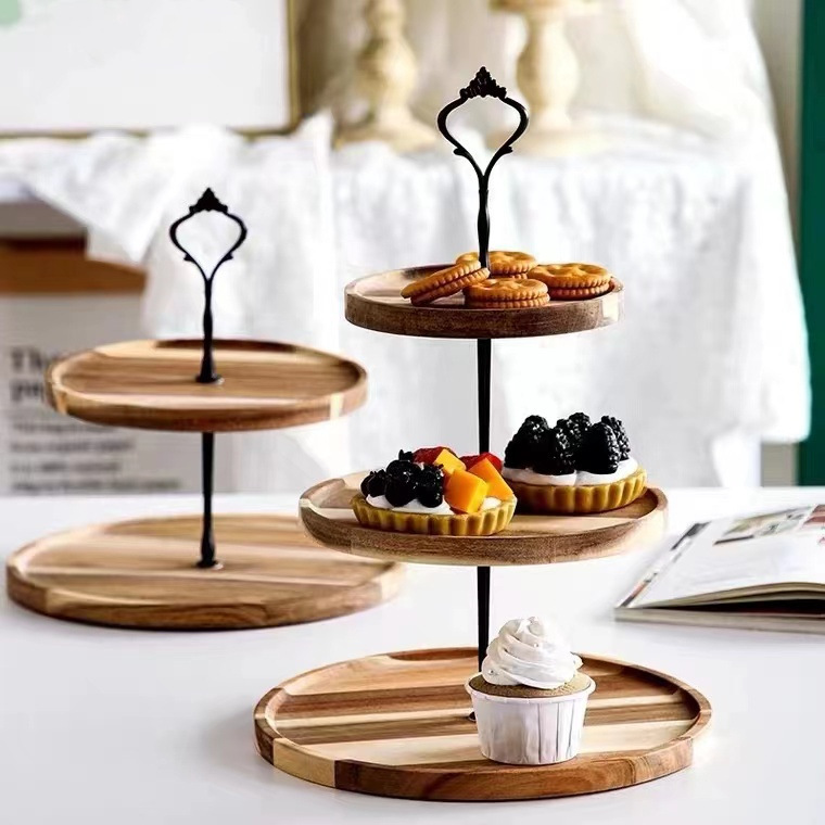 Ins風多層木製果物トレーアカシア木結婚式デザート展示棚軽贅沢家庭用創意木トレー棚