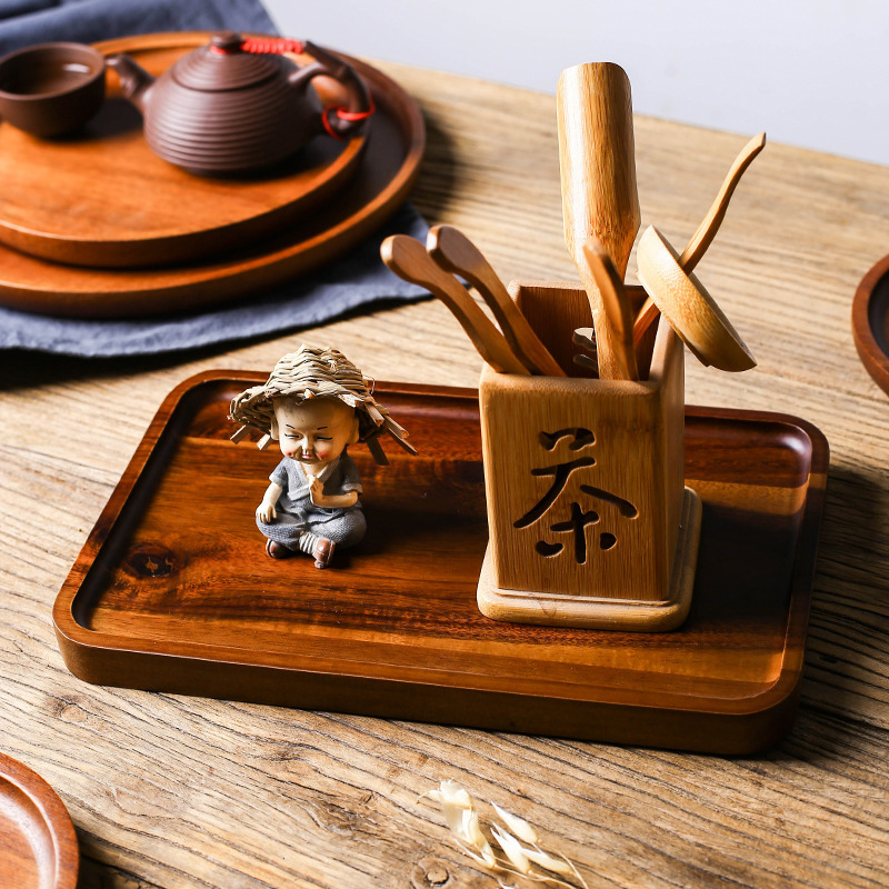 日本式アカシアの木のトレーの長方形の円形のお茶の皿のトレーの家庭用のお茶の杯の寿司のお菓子のケーキのピザの皿