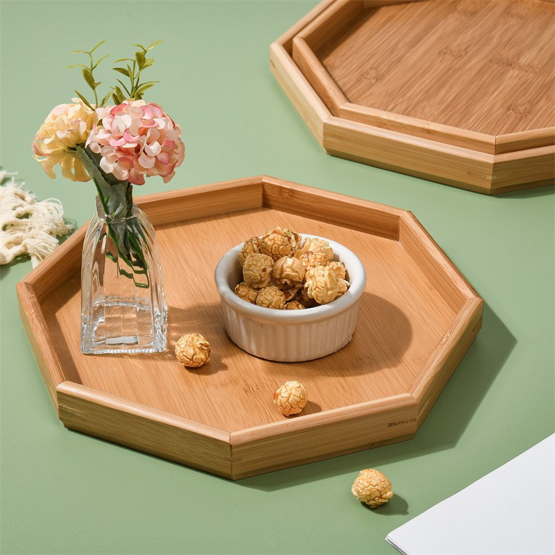 木造のトレー日本式の木のトレーのアカシアの木のトレーの八角形の木の皿の食事の皿のパンのお菓子の皿