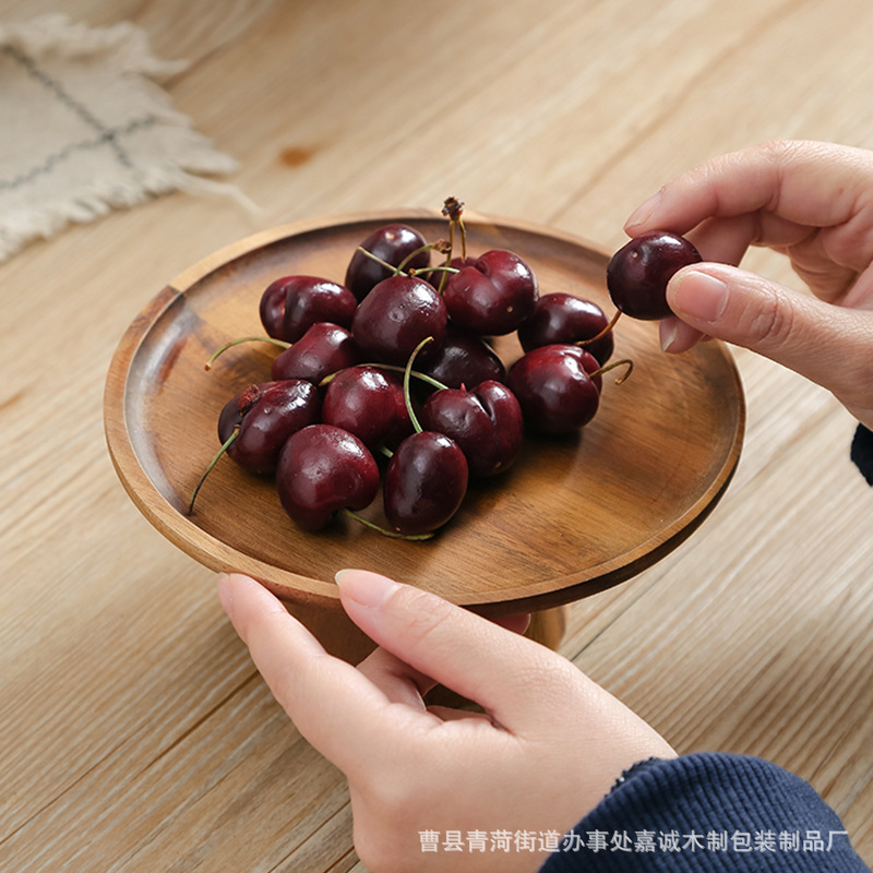 レトロ木造高脚トレー日本式アカシア木トレーレトロネット赤果物菓子皿高脚ケーキ皿