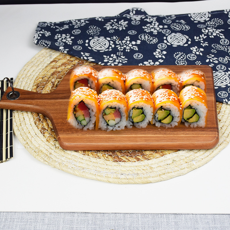 レトロ実木まな板長方形寿司皿ピザ皿果物皿アカシア木ハンドル付きアカシア木まな板