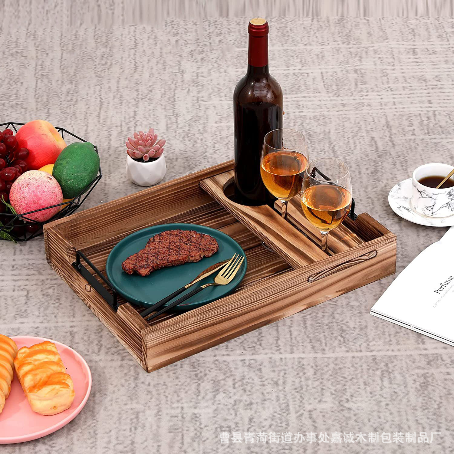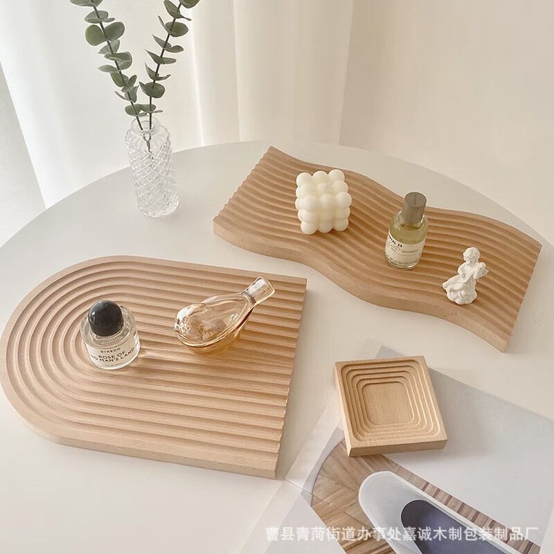 北欧水波紋香薫軽豪華玄関木製コーヒーパントレーけやきグルメ写真撮影道具